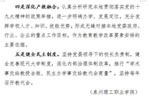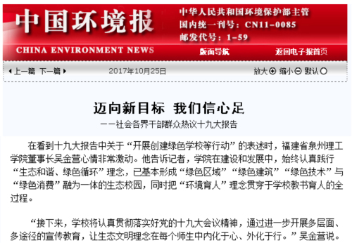 11月8日,福建省《教育工作简报》第23期【高校采风】一栏刊登《泉州理工职业学院部署学习贯彻党的十九大精神》。