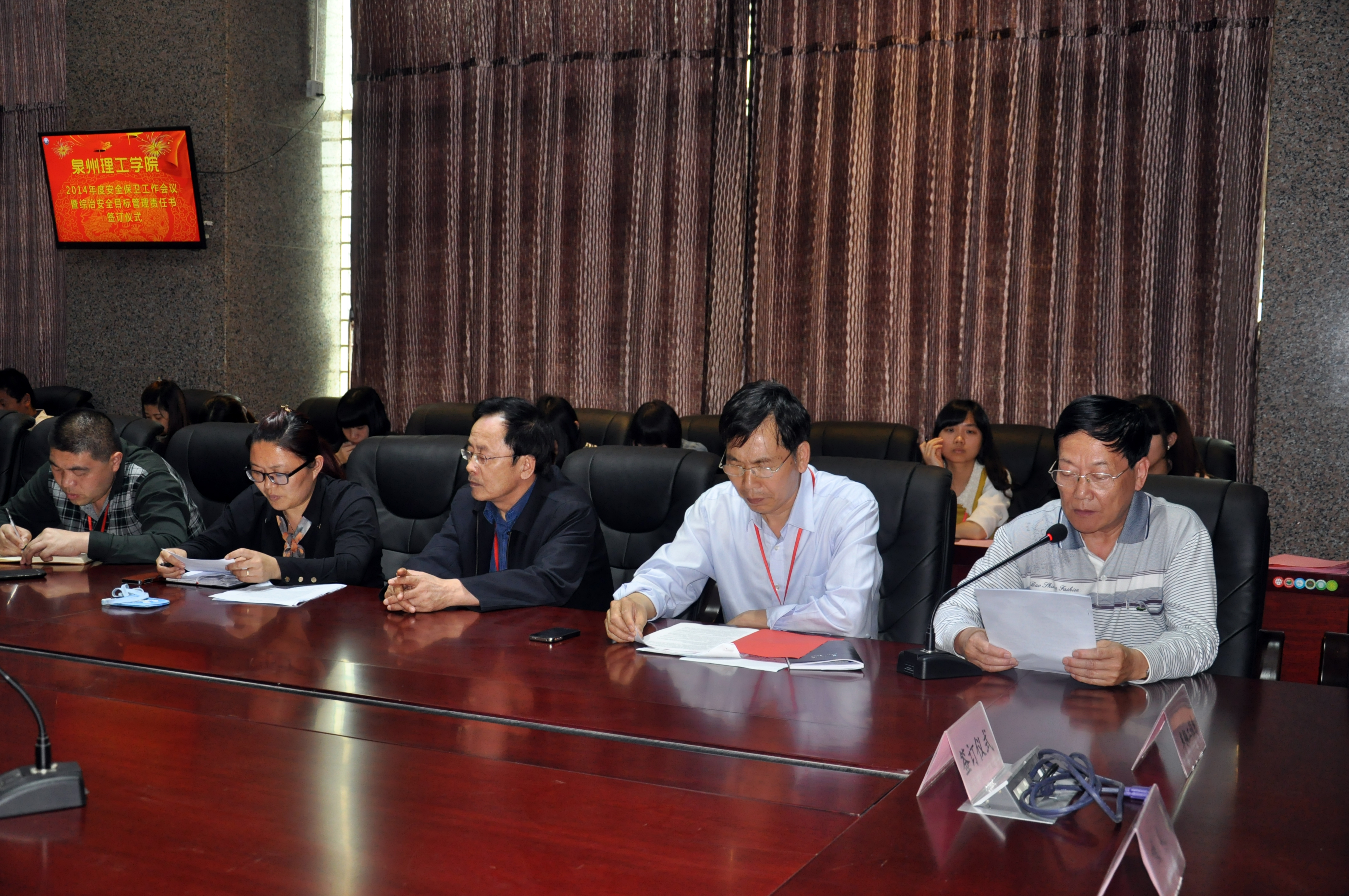 4月29日下午,我校2014年度安全保卫工作会议暨综治安全目标管理责任书签订仪式。出席签订仪式的有党委副书记黄志梅、副校长庄文瑞等领导以及相关各部门负责人。 会上,庄副校长就2013年度校园安全工作做了总结。他...