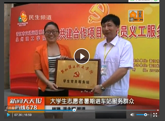 大学生志愿者暑期进车站服务群众 来源:晋江电视台 发布时间: 2015-07-13 10:43 浏览次数 : 87 次 ...