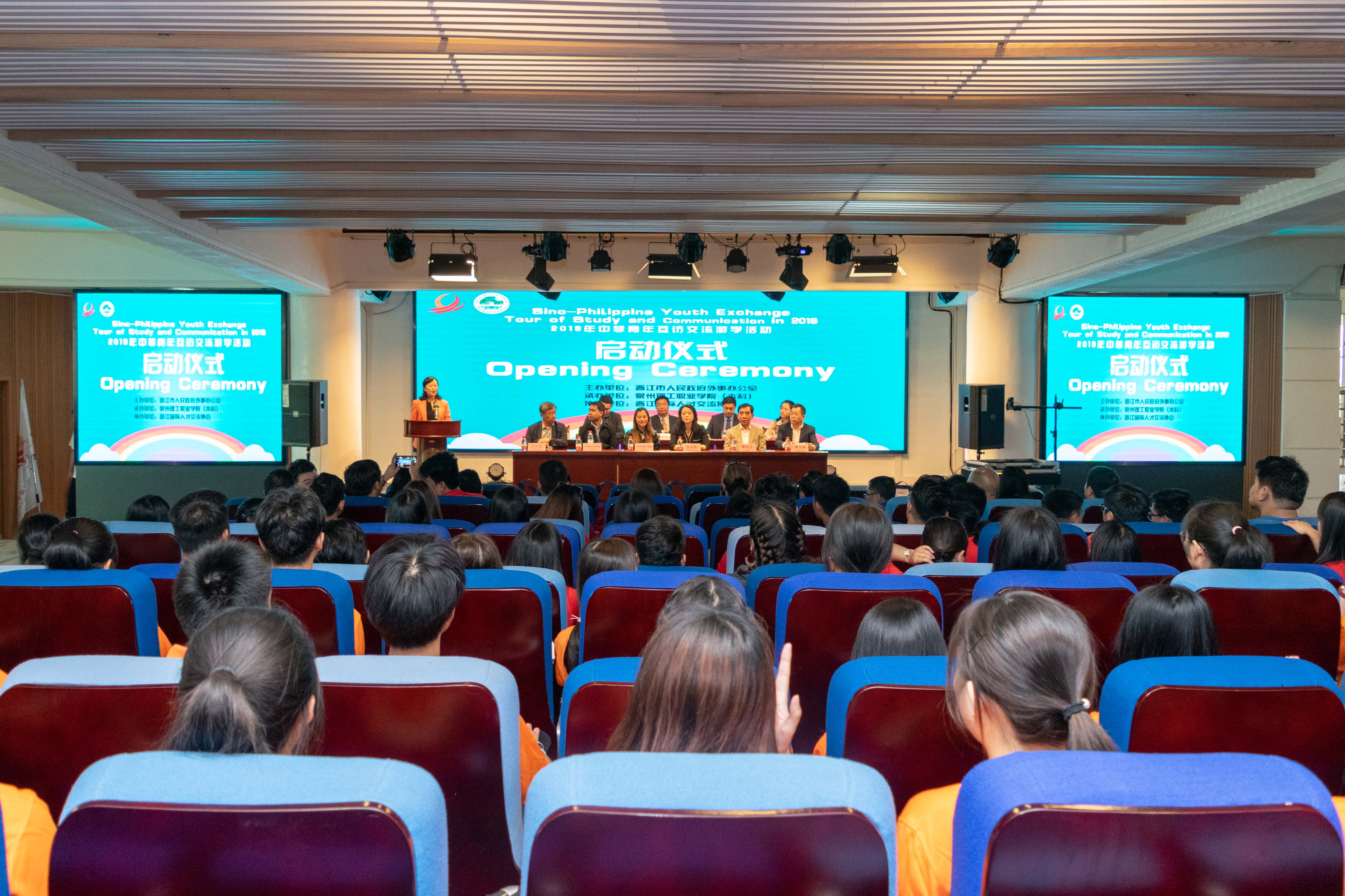 4月18日下午,2019年中菲青年互访交流游学活动在我校举行启动仪式。福建省人民政府外事办公室国交处处长黄劭蓉,晋江市委常委、常务副市长李自力,晋江市委常委、统战部部长黄文福,晋江市政府侨办主任陈金尚, 菲律...