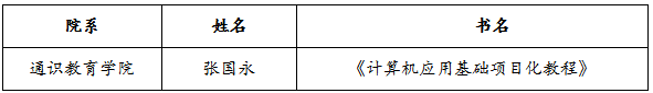 各学院: 根据《教材建设与管理的规定》,经教学指导委员会评审,共遴选1项自编教材拟定为2019年自编教材校级立项,现将立项名单予以公示(如下表所示)。 公示时间从2019年5月28日下午5:30至2019年5月31日下午5:3...