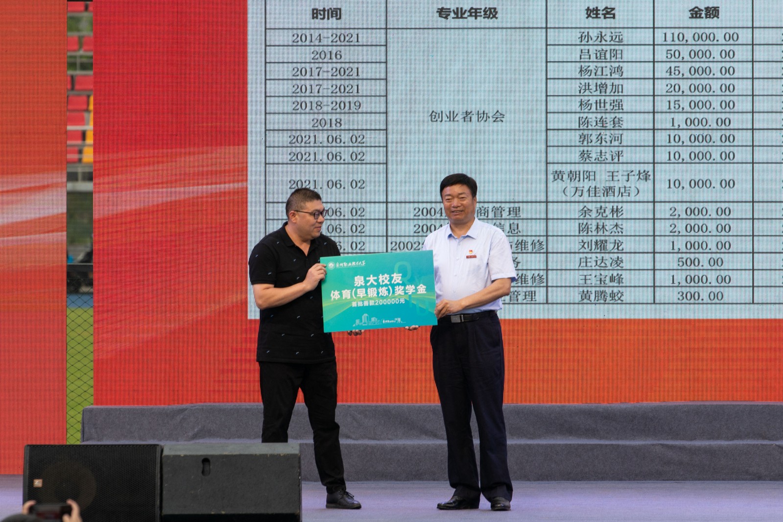 6月5日下午,在我校2021届学生毕业典礼上传来一个好消息,热心校友共同捐资成立了泉州职业技术大学校友体育(早锻炼)奖学金。我校校务顾问、校友总会会长林其天代表热心校友,向我校党委委员、体育(早锻炼)项目组...