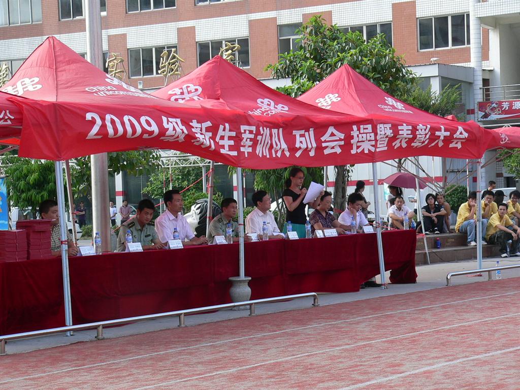 9月13日上午,我校2009级新生军训会操表演暨表彰大会在学校田径场隆重举行。校长苏志明、副校长庄文瑞、党委副书记苏白茹、73141部队政治部副主任王志明及学工处相关领导出席,大会由苏白茹主持。 各军训方...