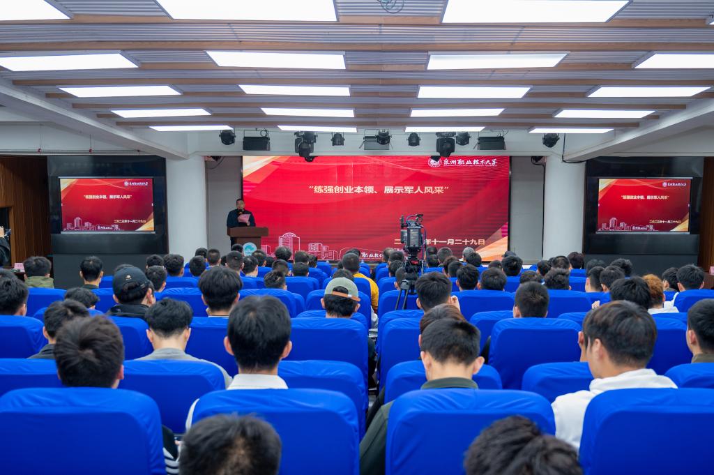 11月29日,泉州职业技术大学召开“练强创业本领,展示军人风采”退役军人报告会,进一步增强大家就业创业意识,提升就业创业能力。出席报告会的有学校创办人、董事长吴金营,校党委书记傅志雄,副校长张建军等校领导,校武装部工作人员、各书院书记,及有部队服役经历的教师,与300多位退役大学生。报告会由武装部部长杨津平主持。 学校创办人吴金营是全国模范退役军人、福建省最美退役军人,办学37年来,学校形成独具特色的...
