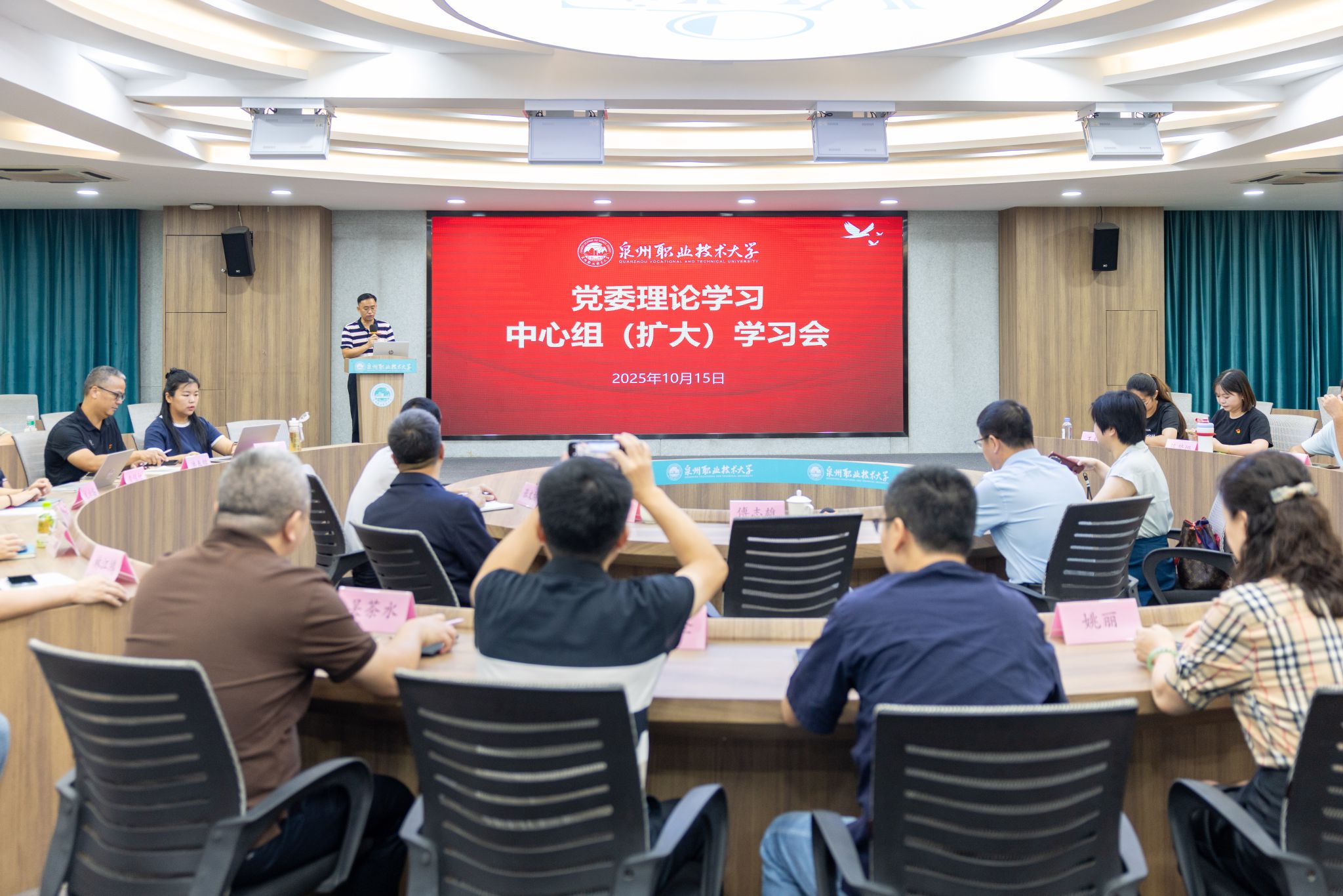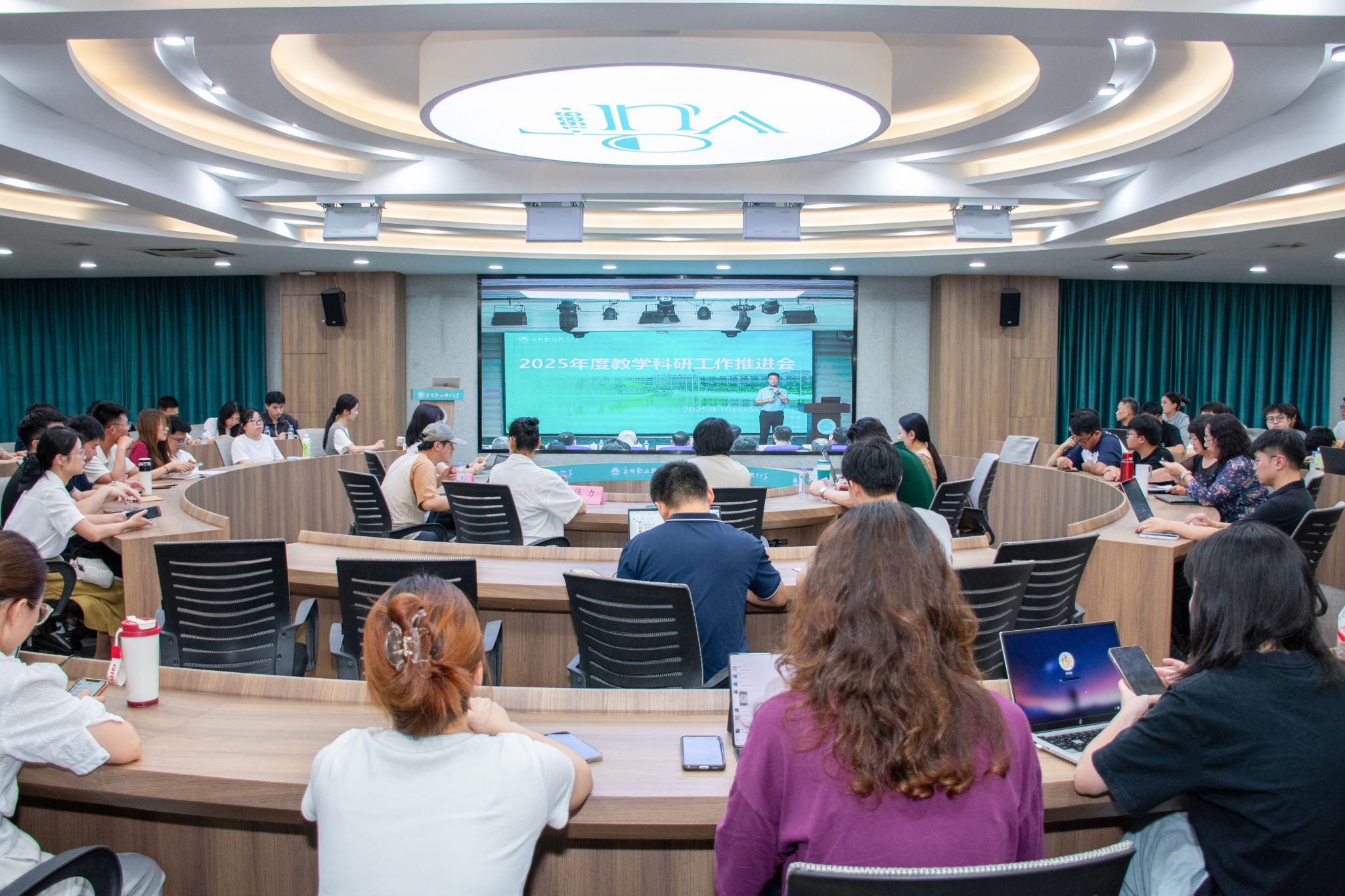 10月15日下午,泉州职业技术大学召开2025年教学科研工作推进会。会议以“以终为始,双高引领备战评估”为主题,全面总结今年以来教学科研工作进展,分析当前形势与任务,部署下一阶段重点工作。在家校领导、各二级学院、职能部门负责人及全体任课教师参加会议。副校长张建军主持会议。聚焦合格评估,以评促建提质增效评建办主任、质量评估处处长李继芳在推进会上围绕本科教学工作合格评估作专题汇报时指出,当前学校迎评促建工...