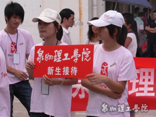 在我校办公大厅,迎新工作正繁忙而有序地进行着,这里设有新生接待处,家长休息室新生行李寄放处等多个服务点,并有各系各班级学生轮流值班接待新生。学生会成员和迎新生志愿者也尽职尽责,用热情周到的服务、细致耐心的引导、亲切温馨的笑容、温暖贴心的话语迎接新生的到来。在泉州市各个车站的校车停靠点,我校学生穿着印有“泉州理工学院”的T恤,高举着校牌,迎接08级新生,接待的同学热情地接过新生的行李,向他们介绍学院情况,并将他们带到学校接待处办理入学手续,安排好各方面事宜。