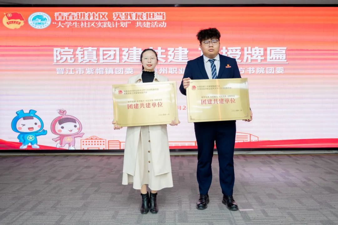 1月24日,晋江团市委与泉州职业技术大学团委联合开展“青春进社区,实践展担当”大学生社区实践计划共建活动暨首批大学生社区兼职团干聘任仪式。