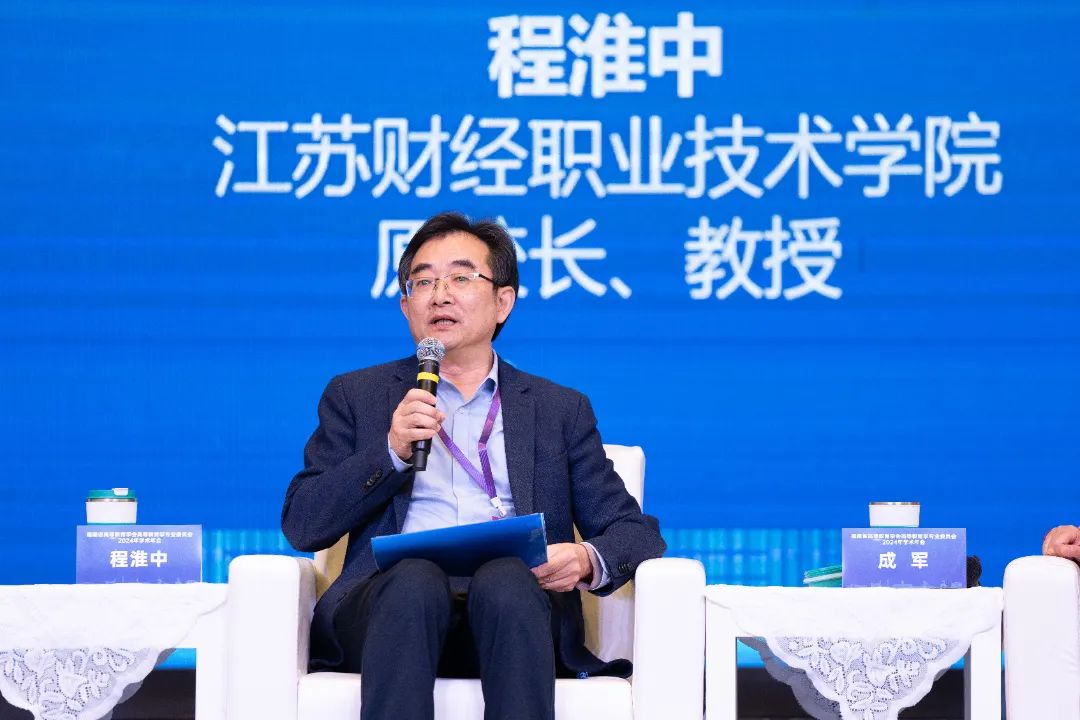 圆桌讨论环节,由厦门南洋职业学院董事长鲁加升教授主持,福州外语外贸学院执行校长黄建平教授、江苏财经职业技术学院原校长程淮中教授、金华职业技术大学原副校长成军教授、泰安技师学院党委书记毕于民教授等4位嘉宾,围绕“数智化与高等教育变革·挑战、前景与策略”的主题发表见解。