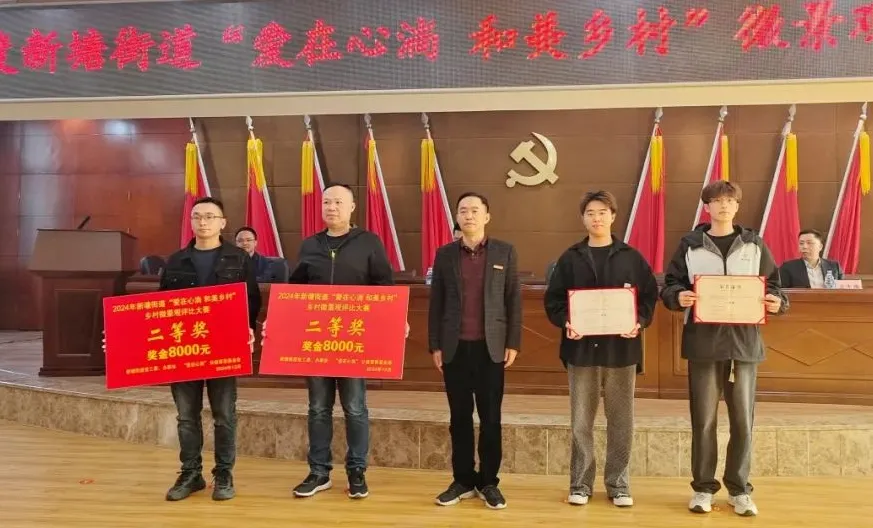 沿着新塘街道的乡间小道前行,以华侨文化、和谐邻里、军民团结、清风正气、乡愁记忆和福文化等为特色的主题微景观,移步换景,妙趣横生,凝练着当地人祖辈的精神赓续,彰显着乡村的文明底蕴,整体服务和建设成效得到了地方领导和当地民众的一致点赞。1月6日,在新塘街道“爱在心淌 和美乡村”乡村微景观大赛的颁奖活动中,参与学生分别获评一等奖1项、二等奖2项、三等奖3项和优秀奖4项。