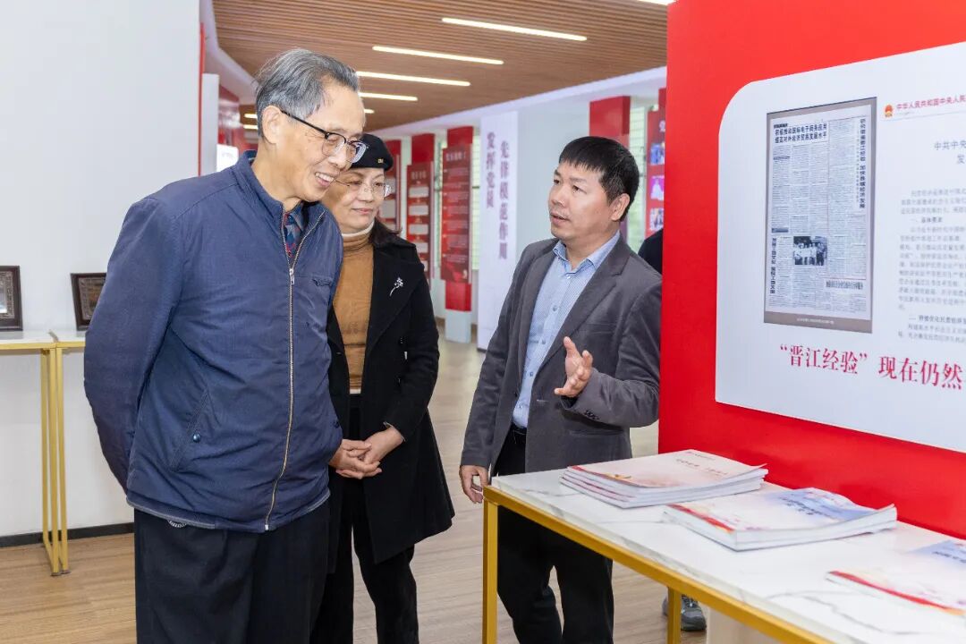 座谈会前,陈晃一行先后实地走访了我校生态校园沙盘、校史馆、党建馆及“一站式”学生社区等场所。