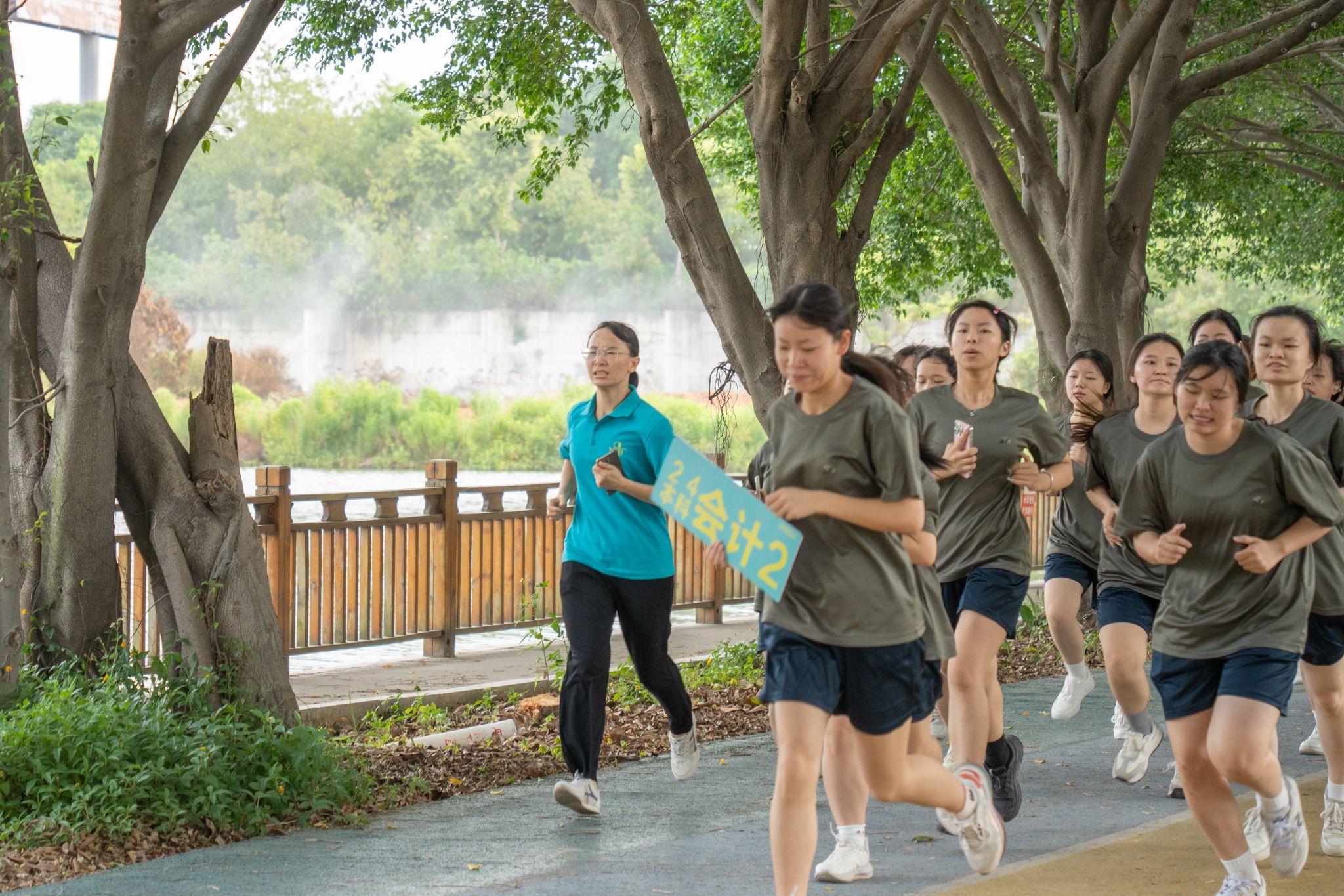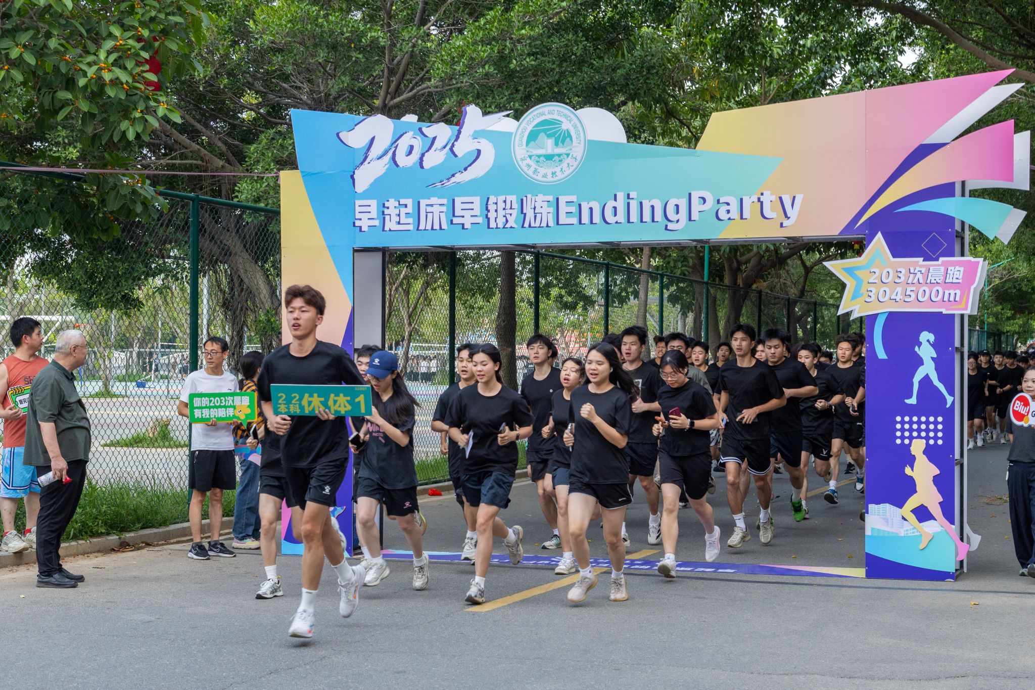 ▲ 教职工陪伴同学们一起参加早锻炼,或在终点迎接
