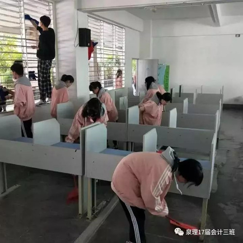 1、2018年度的校历下学期第二周,17电子商务1班为让在校同学们有个更好,更舒适的学习环境,他们在课余时间对图书馆进行了打扫和整理和将部分教室增添了新的桌椅并且还修补了值周旗,为了它能更好完成我们的主人周的接力。